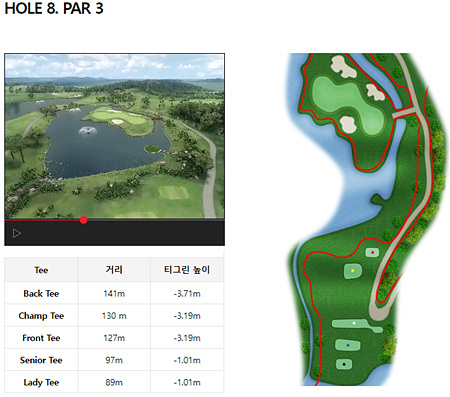 아래 홀 정보를 참고하시면 더 좋습니다. 1홀 사진을 클릭하시어 사진의 오른쪽 면을 클릭하시면 18홀 전체 정보를 순차적으로 보실 수 있으니 참고하세요.